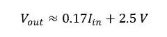 该结果表明,在0A时输出为2.5V,斜率为170mV / A,如参考表所述。